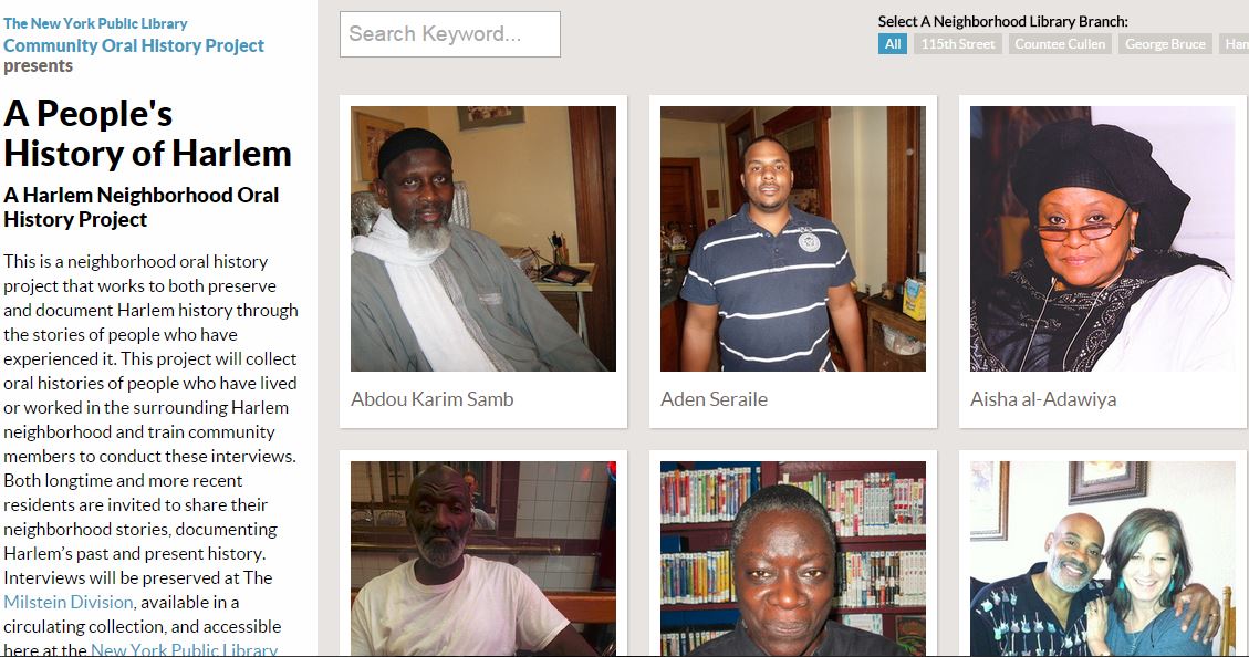This is a neighborhood oral history project that works to both preserve and document Harlem history through the stories of people who have experienced it. This project will collect oral histories of people who have lived or worked in the surrounding Harlem neighborhood and train community members to conduct these interviews. Both longtime and more recent residents are invited to share their neighborhood stories, documenting Harlem’s past and present history.