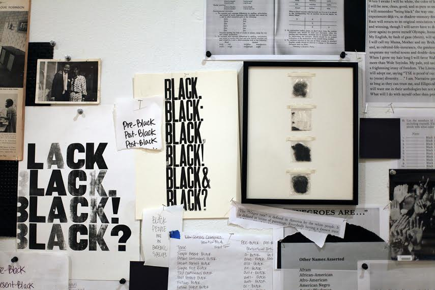 This text-based installation maps my research exploring blackness, citizenship, belonging and temporality as it relates to master narratives around post-racial futures, historical continuity and teleological progress. Progress is traditionally presented as a linear movement. However, history rarely operates this immaculately and there are moments of temporal jam-ups – remission to past patterns and guest appearances of structural haunts. I explore ideas of progress, how pre-fabricated narrative arcs shape the way American histories of race relations are conceptualized and the ruptures – those moments where the narrative of immaculate and linear racial progress in America glitches or stutters a bit.