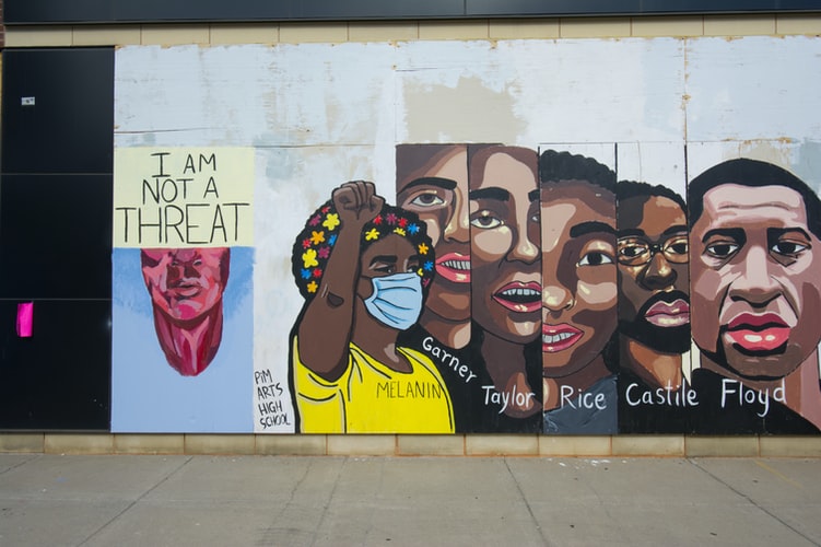 Mural on boarded up windows in Uptown, Minneapolis. By PiM Arts High School