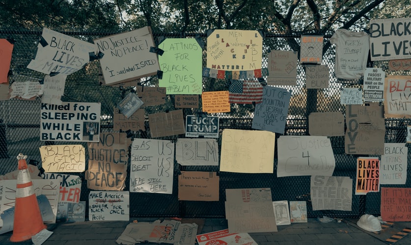Protest signs posted on the gate surrounding the White House (IG: @clay.banks)
