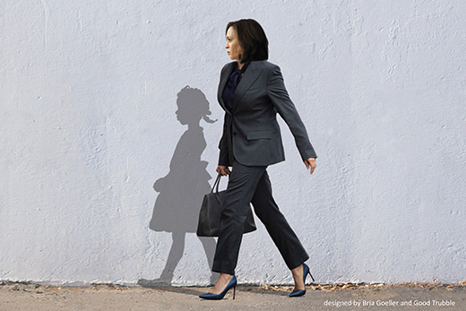 Image By: Bria Goeller. Image of Kamala Harris walking with the shadow of Ruby Bridges, who integrated a New Orleans elementary school in 1960. | Public Domain