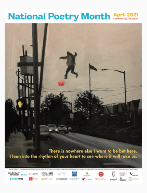 “The 2021 National Poetry Month poster was designed by twelfth grader Bao Lu from Edward R. Murrow High School in Brooklyn, New York, who was the winner of the 2021 National Poetry Month Poster Contest, and features lines by U.S. Poet Laureate Joy Harjo.”