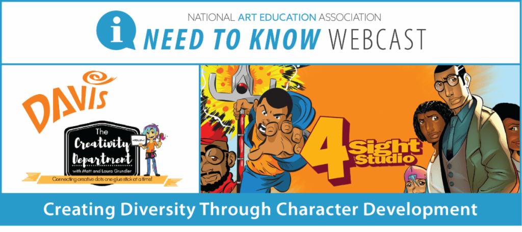 The conversation will focus on the importance of authenticity, intentionality, and vigilance when creating diverse characters in our art. We will discuss the value of asking “why” questions during the process of character development to avoid stereotypes, and the relevance of understanding the “rules of art” before you try to bend them. As Gorden commented in a recent #K12ArtChat Twitter chat, “It’s important that Black kids, Latino kids, biracial kids, all students of color, see themselves in all of our media output. Not just as the support but as the lead. We have to tread lightly but be vigilant and intentional with creation.” Join the conversation for a candid and informative discussion about ways we can approach this important topic.