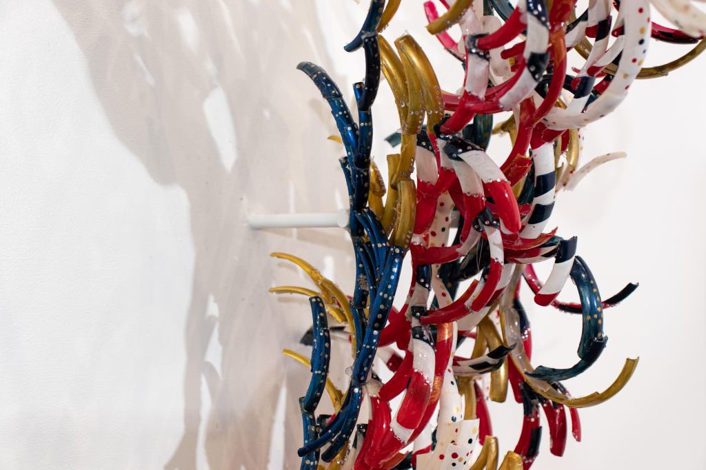 Sculpture made from 2000 artist-made replica acrylic fingernails in the shape of an ascending 200m running course. Fingernails were individually hand painted after the manicure that Florence Griffith-Joyner wore during the 1988 Olympics, when she set the 200 m world record. Sculpture is 200m track at 1:100 scale.