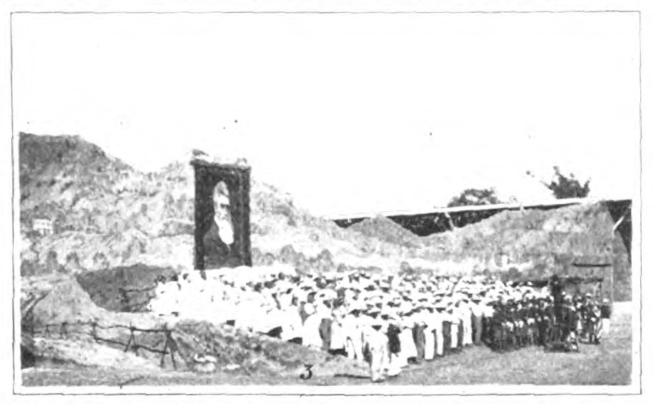 Regarding citizenship, Black America’s stage production ended with an almost unimaginable spectacle, an act called “Historical Pictures”. The chorus of hundreds gathered on the stage to sing patriotic songs as massive ten-foot by twenty-foot portraits were unfurled, one by one: John Brown, Frederick Douglass, William Tecumseh Sherman, Ulysses S. Grant, and Abraham Lincoln.24 All of the performances of the day, from the living plantation to the brass band of the historic Ninth U.S. Cavalry, culminated in this scene of patriotism and modernity, marking an end to the previous era and attempting to introduce Black America as something new.25