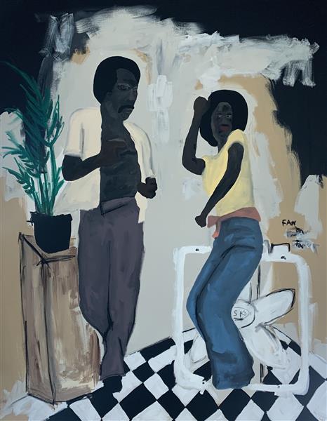 About the Artist: Jammie Holmes is a self-taught painter from Thibodaux, Louisiana, whose work tells the story of contemporary life for many black families in the Deep South. Through portraiture and tableaux, Holmes depicts stories of the celebrations and struggles of everyday life, with particular attention paid to a profound sense of place. Growing up 20 minutes from the Mississippi River, Holmes was surrounded by the social and economic consequences of America’s dark past, situated within a deep pocket of the Sun Belt, where reminders of slavery exist alongside labor union conflicts that have fluctuated in intensity since the Thibodaux Massacre of 1887. His work is a counterpoint to the romantic mythology of Louisiana as a hub of charming hospitality, an idea that has perpetuated in order to hide the deep scars of poverty and racism that have structured life in the state for centuries.