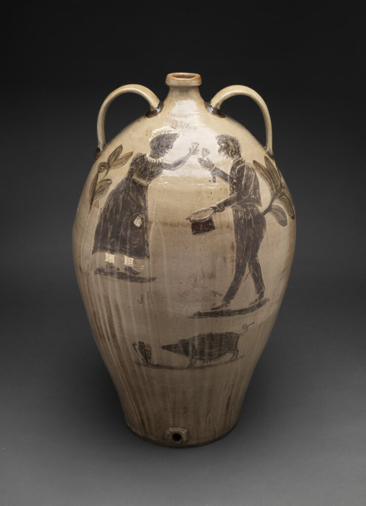 ___________Maker(s) once known, likely enslaved at Phoenix Stone Ware Factory (ca. 1840), and attributed to Thomas M. Chandler, Jr. (American, 1810–1854), Watercooler, ca. 1840, alkaline-glazed stoneware with iron and kaolin slip, High Museum of Art, Atlanta, purchase in honor of Audrey Shilt, President of the Members Guild, 1996–1997, with funds from the Decorative Arts Acquisition Endowment and Decorative Arts Acquisition Trust, 1996.132. Photo by Michael McKelvey.