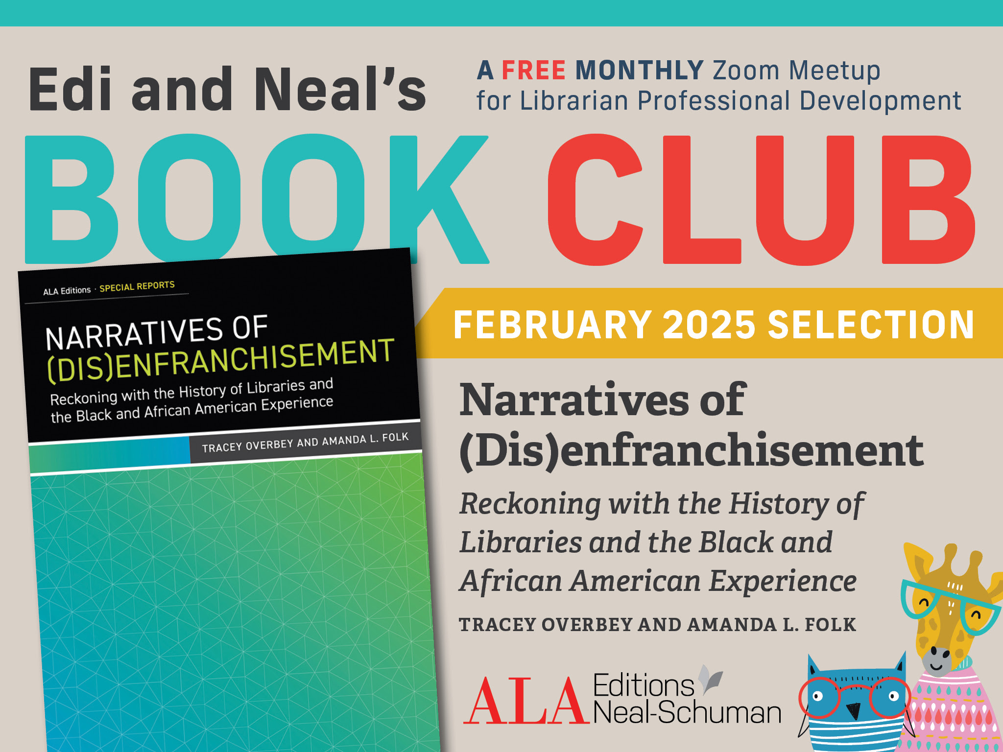 Join five ALA Editions authors on Zoom Wednesday, February 19, 2025 at 1 PM Central Time! Over the hour, we’ll have a multi-part discussion of Black and African American experiences in libraries, historically and presently, and what can be done both to improve those experiences and to more effectively talk about race across educational settings.
