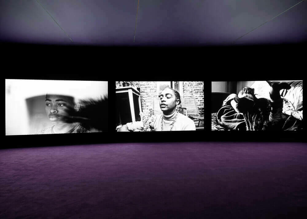Akomfrah’s 6-channel film Purple (2017) addressing climate change is on view at the Hirshhorn Museum and Sculpture Garden through 2023.