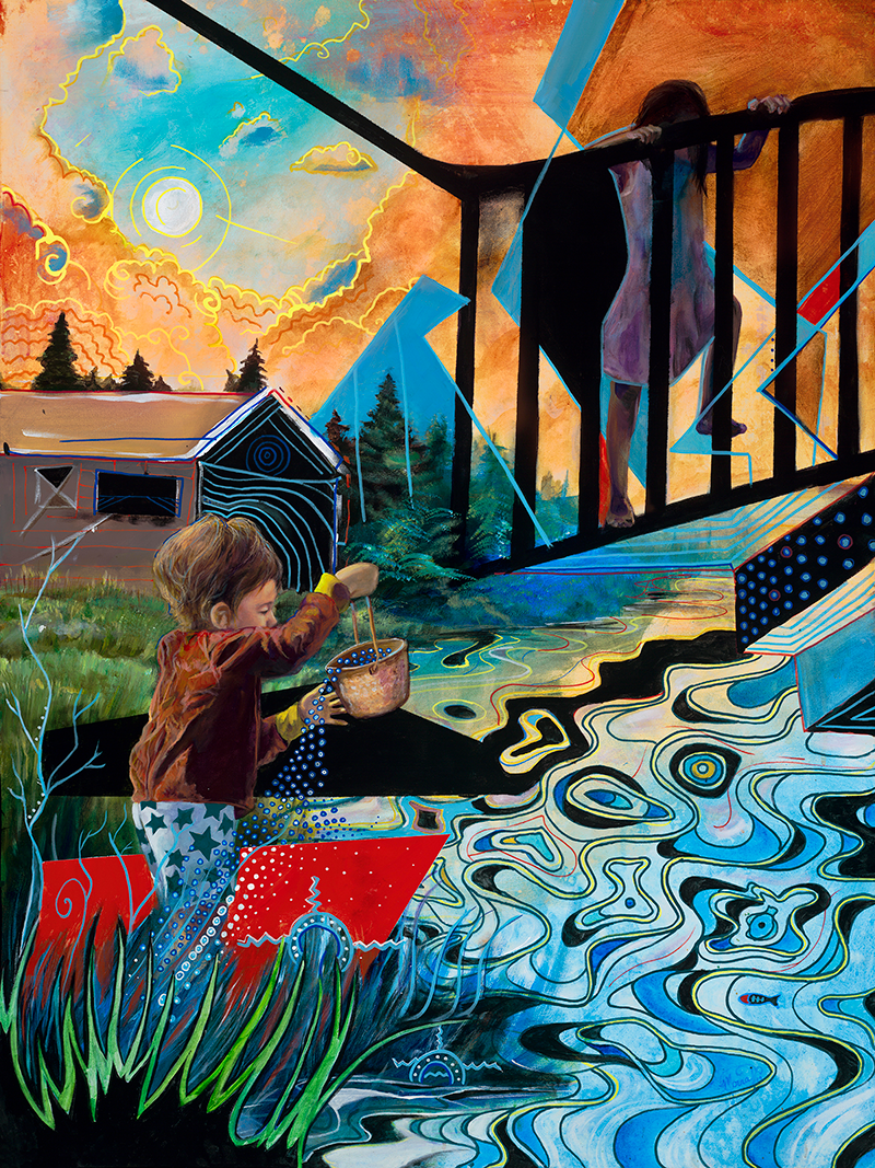 Highlights include Basil’s Dream (2024) by Jonathan Thunder (Red Lake Band of Ojibwe) and Ziigwan Binesi – Spring Thunderbird (2018) by Michelle Defoe (Red Cliff Band of Lake Superior Chippewa), among works by other renowned artists. The exhibition challenges perceptions of Indigenous expression, centering voices that reclaim narrative, visibility, and representation in contemporary art spaces.