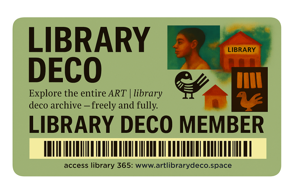 - 🌟 ART Library Deco Member (FREE) – For individuals who believe in access, preservation, and cultural stewardship. At this level, you may choose to pay what you can to receive Patron privileges and experience the full Digital Art Library. Complimentary Patron privileges granted at this level are available for one year.