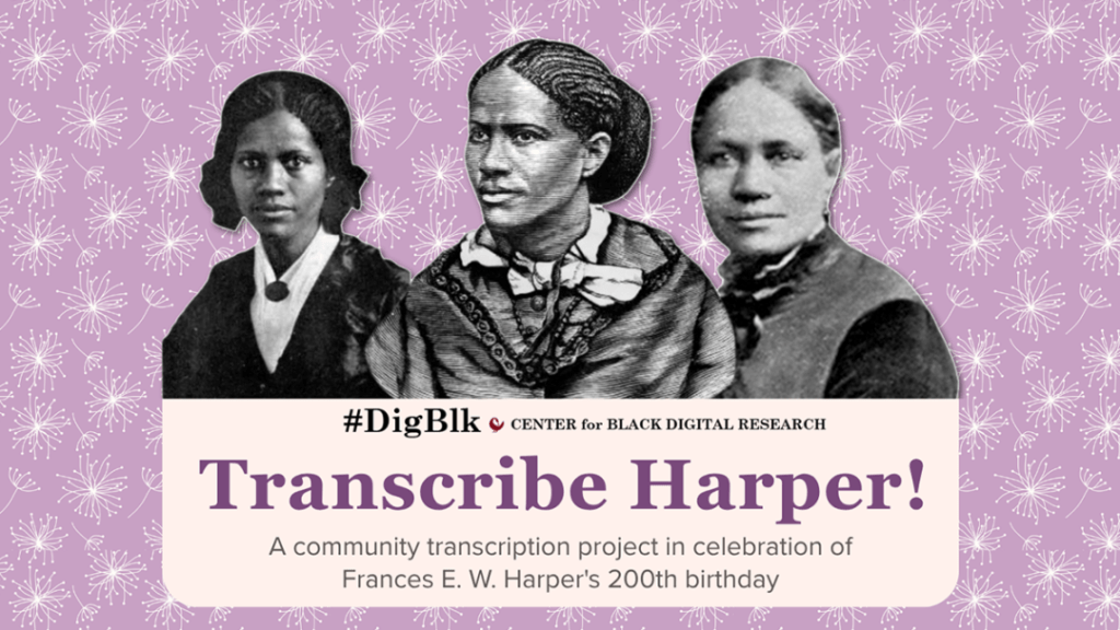 Join us for our ongoing Transcribe-a-thon Series, where we gather in community to make Black history more visible, searchable, and accessible. This session will focus on the writings and speeches of Frances Ellen Watkins Harper and the historic records of the Colored Conventions Movement.